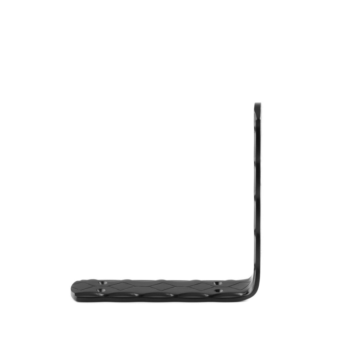 Originally designed, Metal L Bracket with a diamond embossment and rounded ends. Forged in our facility using strong, American steel.